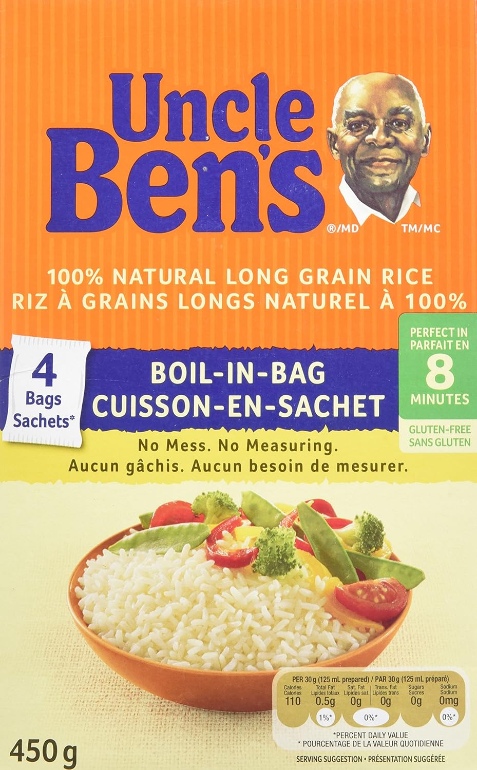 Uncle ben's classic basmati rice250g. Uncle ben's rice to get revamp after criticism over racial stereotyping. Buy uncle ben's rice and get the best deals at the lowest prices on ebay! Uncle ben's dry rice uncle ben's® wholegrain rice uncle ben's® long grain rice uncle ben's® boil in bag basmati rice uncle ben's® boil in special microwave rice uncle ben's® special vegetable pilau rice uncle ben's® special tomato & basil rice uncle ben's® special thai sweet. These handy packets of boil in the bag rice are great, my whole family loves them and they are super quick and easy to use. Buy uncle ben's from ocado. Uncle ben's boil in the bag rice instructions uncle ben's boil in the cooker manufacturer's instructions. Boil a large amount of water in a saucepan. Uncle ben's® moved into brown rice varieties. 1987 ad for uncle ben's rice that you boil in the perforated bag. Boil in the bag instructions: Squeeze the pouch to separate the rice.tear the top corner open slightly.heat for 2 mins in a 700w microwave or squeeze the pouch to separate the rice.boil 30ml (about 2tbsp) water.add the rice, cover and simmer for 3. 0 g sugars (no dv defined);