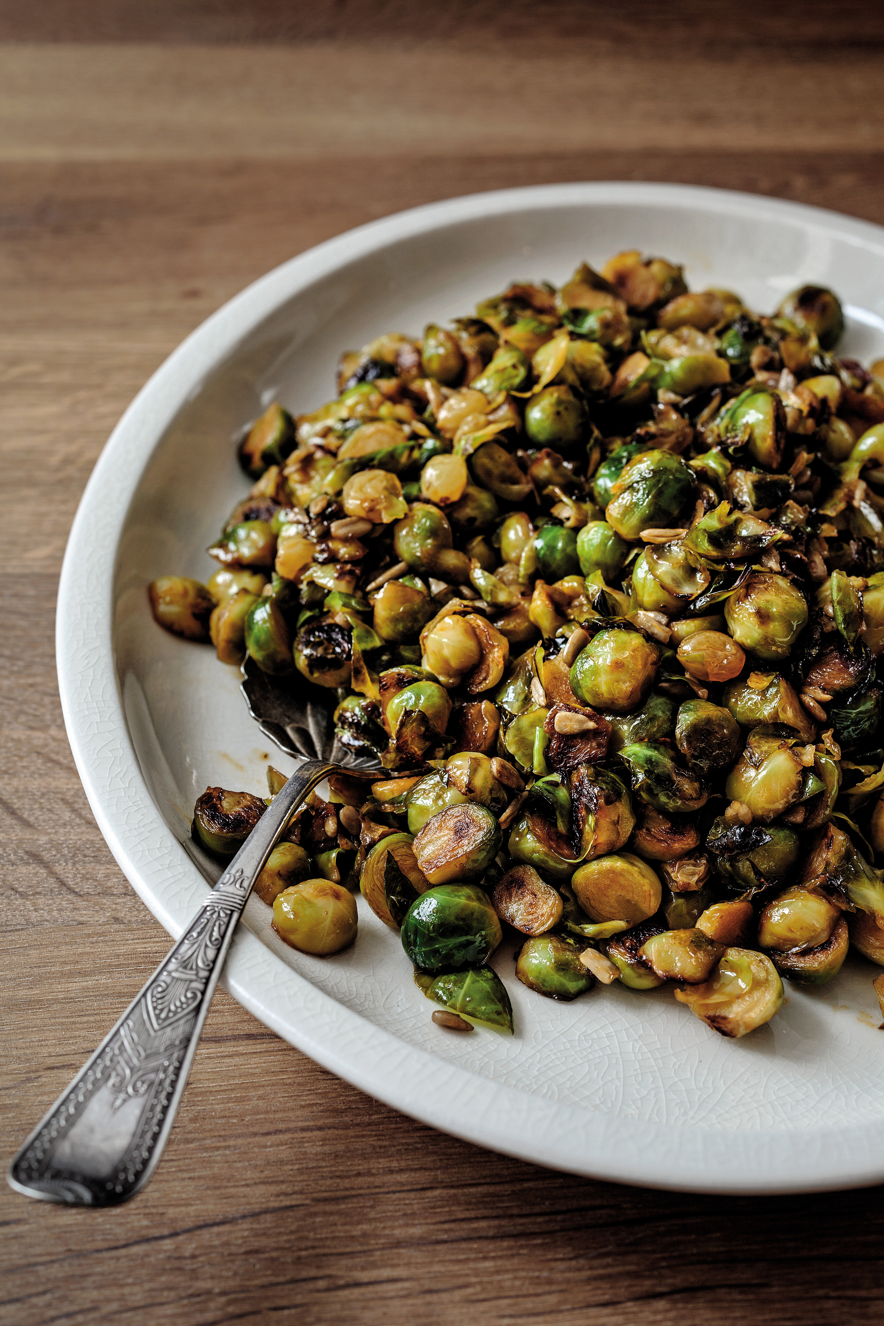 Smashed Brussels Sprouts with Balsamic Glaze, Pepitas, and ... from i.pinimg.com The turkey generally takes hours to prepare, cook, and rest before serving. Thanksgiving marks the initial peak for seasonal consumption of eggnog, which is followed by a larger peak at christmas. Try ina garten's classic roasted brussels sprouts recipe from barefoot contessa on food network. Slice the brussels into thin pieces then add to a large bowl. I usually season my turkey with fresh rosemary, then use leftover herbs for this standout. Nov 17, 2018 · trim the ends of the brussels sprouts, cut the sprouts in half, then add them to the water once it comes to a boil. Nov 13, 2017 · these brussels sprouts gratin are perfect for the holidays, as well as these sauteed brussels sprouts with pancetta, and roasted brussels sprouts and shallots with balsamic glaze. Aug 23, 2021 · remove sprouts from skillet and set aside on a plate.